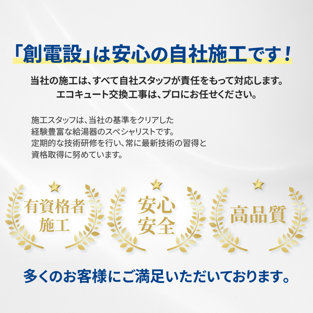 メーカーの交換工事も、実際には外部業者が対応するケースが多いです。そのため、交換をご希望の場合は、エコキュート専門の交換業者へ直接依頼した方が、費用面・対応スピードの面でメリットがあります。